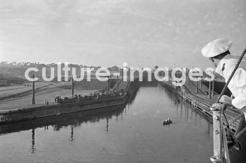 Panama, Panamakanal, Kanal. Aus der Sammlung Hanns Tschira, Bordfotograf des Norddeutschen Lloyd 1930-1939. Panama, The Panama Canal, Channel. Collection Hanns Tschira, photographer of the North German Lloyd 1930-1939.