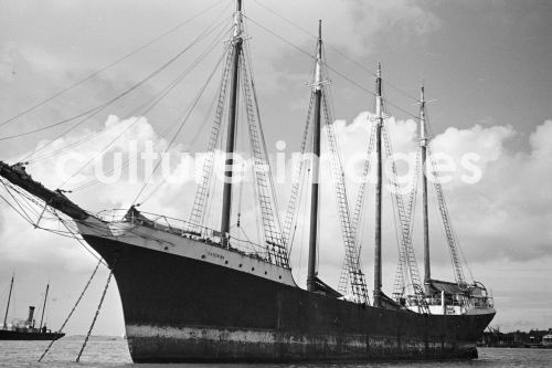 Viermastschoner CATCAINA vor den Bahamas, Nassau, Karibik, Schiff, Segelschiff, Viermaster, Commonwealth der Bahamas, Westindische Inseln. Aus der Sammlung Hanns Tschira, Bordfotograf des Norddeutschen Lloyd 1930-1939. The Bahamas, Nassau, The Caribbean, Ship, Sailing ship, Four-masted sailing ship, Commonwealth of the Bahamas, West Indian islands, maritime. Collection Hanns Tschira, photographer of the North German Lloyd 1930-1939.