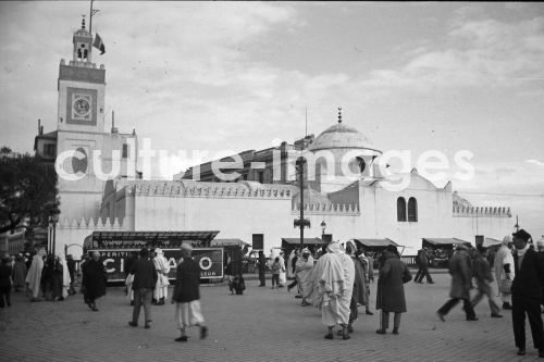 Algerien, Algier, Strassenszene, Moschee. Aus der Sammlung Hanns Tschira, Bordfotograf des Norddeutschen Lloyd 1930-1939. Algeria, Algiers, urban area, Mosque. Collection Hanns Tschira, photographer of the North German Lloyd 1930-1939.