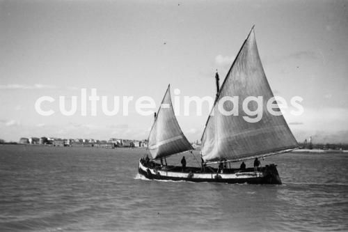 Italien, Venedig, Seefahrt, Segler, Segelschiff, Segelboot, Boot. Aus der Sammlung Hanns Tschira, Bordfotograf des Norddeutschen Lloyd 1930-1939. Italy, Venice, Navigation, Sailing ship, Sailboat, sea journey, cruise, passage. Collection Hanns Tschira, photographer of the North German Lloyd 1930-1939.