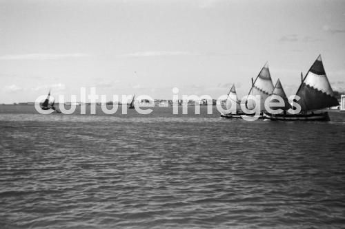 Italien, Venedig, Seefahrt, Segler, Segelschiff, Segelboot, Boot. Aus der Sammlung Hanns Tschira, Bordfotograf des Norddeutschen Lloyd 1930-1939. Italy, Venice, Navigation, Sailing ship, Sailboat, sea journey, cruise, passage. Collection Hanns Tschira, photographer of the North German Lloyd 1930-1939.