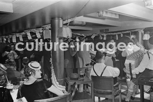 Seefahrt, Interieur, Tanz, Inneneinrichtung, Dampfer, Norddeutscher Lloyd, TS Bremen, Turbine Steamer, Turbinendampfer, an Bord. Aus der Sammlung Hanns Tschira, Bordfotograf des Norddeutschen Lloyd 1930-1939. Bremen, Interior, Dance, interior fittings, Steamboat, Passenger Liner, North German Lloyd, Bremen TS, Turbine Steamer, Turbine steamboat, aboard, sea journey, cruise, passage. Collection Hanns Tschira, photographer of the North German Lloyd 1930-1939.
