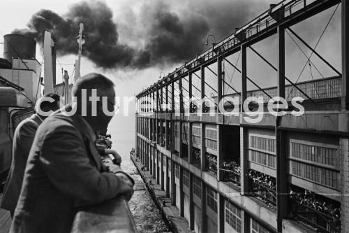 Schiff Bremen, anlegen, Aussenansicht, Passagierschiff, Dampfer, Schiff, Norddeutscher Lloyd, TS Bremen, Turbine Steamer, Turbinendampfer, an Bord. Aus der Sammlung Hanns Tschira, Bordfotograf des Norddeutschen Lloyd 1930-1939. Ship Bremen, steamboats, Ship, North German Lloyd, Bremen TS, Turbine Steamer, Turbine steamboat, landing, Outside view, Passenger liner, Aboard, sea journey, cruise, passage. Collection Hanns Tschira, photographer of the North German Lloyd 1930-1939.