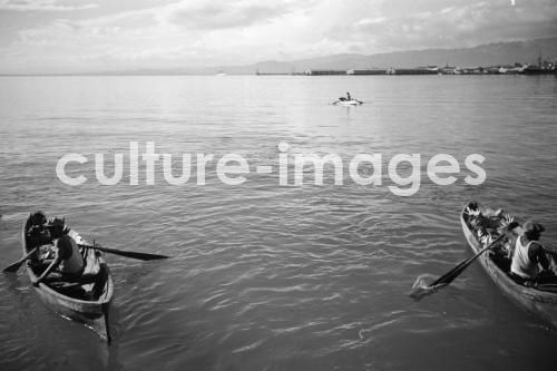 Jamaica, Kingston, Karibik, Holzboote. Aus der Sammlung Hanns Tschira, Bordfotograf des Norddeutschen Lloyd 1930-1939. Jamaica, Kingston, The Caribbean, Wooden boats. Collection Hanns Tschira, photographer of the North German Lloyd 1930-1939.
