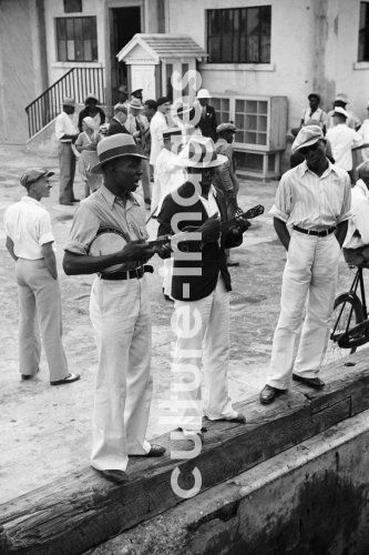 Bahamas, Nassau, Karibik, Strassenszene, Musiker, Strassenmusiker. Aus der Sammlung Hanns Tschira, Bordfotograf des Norddeutschen Lloyd 1930-1939 the Bahamas, Nassau, the Caribbean, street scene, musician, street musician. Collection Hanns Tschira, photographer of the North German Lloyd 1930-1939