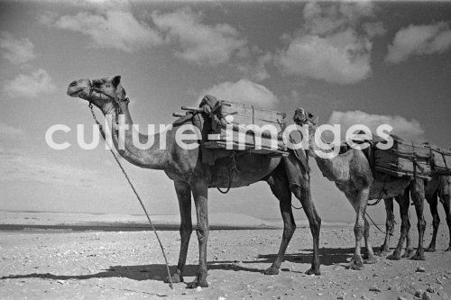 Ägypten, Suezkanal, Kamele, Karawane, Kamelkarawane. Aus der Sammlung Hanns Tschira, Bordfotograf des Norddeutschen Lloyd 1930-1939 Egypt, the Suez Canal, camels, caravan, camel caravan. Collection Hanns Tschira, photographer of the North German Lloyd 1930-1939
