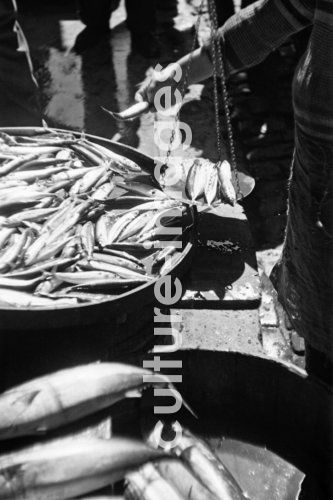 Türkei, Istanbul, Fischer, Fische, Fischfang, tote Fische, Fischereihafen. Aus der Sammlung Hanns Tschira, Bordfotograf des Norddeutschen Lloyd 1930-1939 Turkey, Istanbul, fisherman, fish, fishing, dead fish, fishing port. Collection Hanns Tschira, photographer of the North German Lloyd 1930-1939