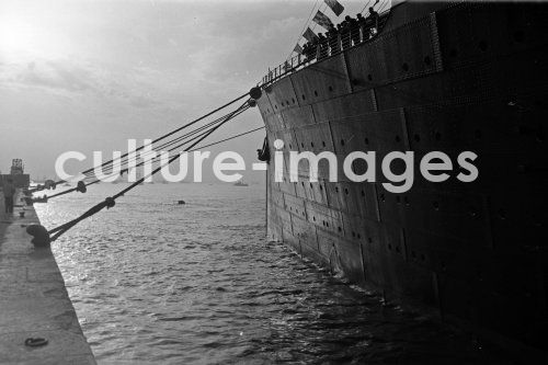 Portugal, Norddeutscher Lloyd, Schiff Columbus, Passagierschiff, Seeschiff, Dampfer, Dampfschiffahrt, Dampfschiff, Schiffahrt, Hafen Lissabon, Aussenansicht. Aus der Sammlung Hanns Tschira, Bordfotograf des Norddeutschen Lloyd 1930-1939 Portugal, North German Lloyd, ship Columbus, passenger liner, sea ship, steamboat, steam navigation, steamer, navigation, harbour Lisbon, outside view. Collection Hanns Tschira, photographer of the North German Lloyd 1930-1939