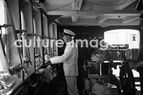 Seefahrt, Kommandobrücke, Offizier, Norddeutscher Lloyd, Columbus, Passagierschiff, Seeschiff, Dampfer, Dampfschiffahrt. Aus der Sammlung Hanns Tschira, Bordfotograf des Norddeutschen Lloyd 1930-1939 navigation, control platform, officer, North German Lloyd, Columbus, passenger liner, sea ship, steamboat, steam navigation. Collection Hanns Tschira, photographer of the North German Lloyd 1930-1939