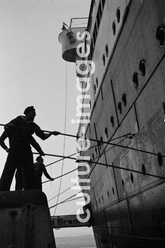 Seefahrt, Norddeutscher Lloyd, Schiff Columbus, Schiffahrt, Dampfer, Passagierschiff, Dampfschiff, Malerarbeiten, Beiboot, Detail. Aus der Sammlung Hanns Tschira, Bordfotograf des Norddeutschen Lloyd 1930-1939. navigation, North German Lloyd, ship Columbus, navigation, steamboat, passenger liner, steamer, paintings, sloop, detail. Collection Hanns Tschira, photographer of the North German Lloyd 1930-1939.