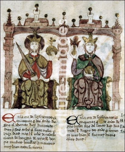 Rekkared I. (auch Reccared), König der Westgoten 586-601 ( links). LUYVA, westgotischer König, Westgoten 581-603 ( rechts) SEMBLANZAS DE REYES BIBLIOTECA NACIONAL. MADRID - RECAREDO I REY VISIGODO 586-601 ( IZQUIERDA) LUYVA REY VISIGODO 581-603 ( DERECHA) SEMBLANZAS DE REYES BIBLIOTECA NACIONAL. MADRID