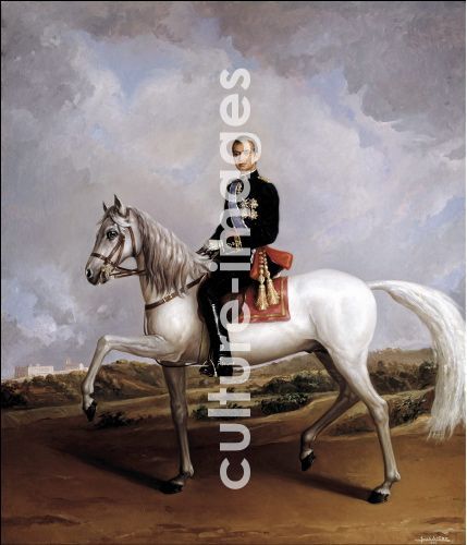 JUAN CARLOS I König von Spanien, ReiterPorträt DE JACINTO DEL CASO, 1985 - JUAN CARLOS I REY DE ESPAÑA . ROMA 1938- RETRATO ECUESTRE DE JACINTO DEL CASO, AÑO 1985