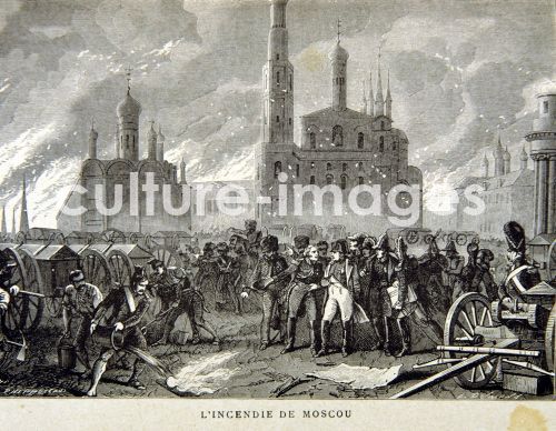 Napoleon I., Kaiser der Franzosen, 1769 - 1821. Der Brand von Moskau nach der Besetzung durch Napoleon 1812 , Stich BILIOTECA NACIONAL . MADRID - NAPOLEON I EMPERADOR DE FRANCES . 1769 - 1821 INCENDIO DE MOSCU TRAS LA OCUPACION POR NAPOLEON EN 1812 Grabado BILIOTECA NACIONAL . MADRID