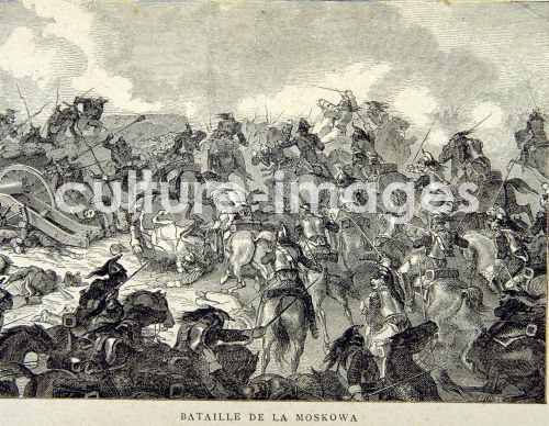 Napoleon I., Kaiser der Franzosen, 1769 - 1821. Kampf um Moskau , 1812, Stich BIBLIOTECA NACIONAL . MADRID - NAPOLEON I EMPERADOR DE FRANCES . 1769 - 1821 BATALLA DE MOSCU EN 1812, QUE TERMINO CON LA OCUPACION DE LA CIUDAD POR NAPOLEON. Grabado BIBLIOTECA NACIONAL . MADRID