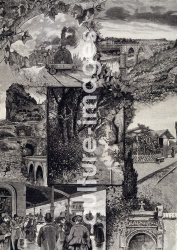 Eisenbahn in Spanien, Szenen einer Zugfahrt, Schnellzug , Zug, 1890 Stich - FERROCARRILES ESPAÑA EL TREN EXPRES APUNTES DEL NATURAL DE HERMENEGILDO ESTEVAN, AÑO 1890 Grabado , Illustration