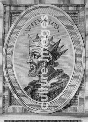 Witterich war von Juni/Juli 603 bis April 610 König der Westgoten. Stich, Porträt von ARNOLDO VANWESTER, 1684 BIBLIOTECA NACIONAL . MADRID - WITERICO REY VISIGODO DE 608-610 Grabado RETRATO DE ARNOLDO VANWESTER, 1684 BIBLIOTECA NACIONAL . MADRID