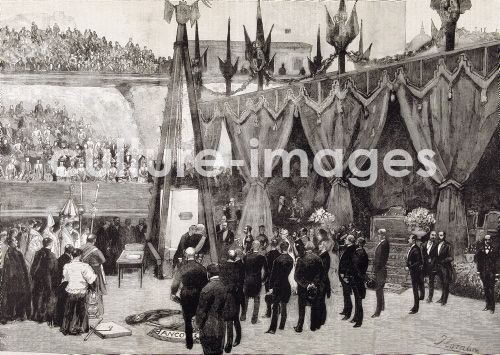 MADRID COLOCACION DE LA PRIMERA PIEDRA DEL EDIFICIO DEL BANCO DE ESPAÑA, POR EL König Alfons XII Stich , 1884 MADRID PINTADO - MADRID COLOCACION DE LA PRIMERA PIEDRA DEL EDIFICIO DEL BANCO DE ESPAÑA, POR EL REY ALFONSO XII Grabado DE LA , Illustration, AÑO 1884 MADRID PINTADO