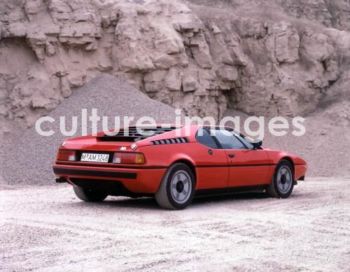 Auto, BMW M1, Sportwagen, rot, Coupé, Coupe, Baujahr 1978, 79, Youngtimer, stehend, schräg von hinten, Heckansicht, Seitenansicht Car, BMW M1, sports car, red, Coupé, Coupe, model year 1978, 1979, old car, standing, diagonal back, back view, side view