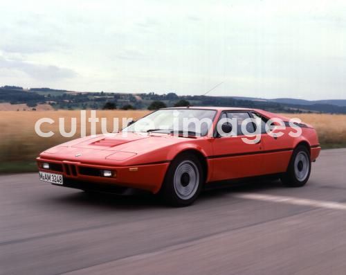 Auto, BMW M1, Sportwagen, rot, Coupé, Coupe, Baujahr 1978, 79, Youngtimer, fahrend, schräg von vorne, Frontansicht, Seitenansicht, Landstraße Car, BMW M1, sports car, red, Coupé, Coupe, model year 1978, 1979, old car, driving, diagonal front, front view, side view, road, country road