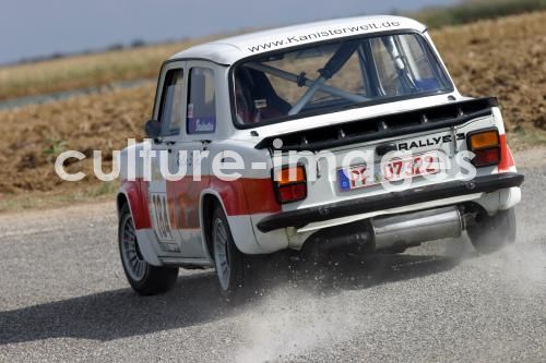 Auto, Simca 1000 Rallye 3, Youngtimer, Baujahr 1977-1978, weiss, 70er Jahre, FGUJ, fahrend, schräg von hinten, Heckansicht, Landstraße Car, Simca 1000 Rallye 3, old car, model year 1977-1978, white, 1970s, seventies, driving, diagonal back, back view, road, country road