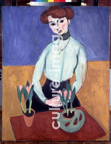 Junge Frau mit Tulpen (Jeanne Vaderin), Matisse, Henri (1869-1954). Öl auf Leinwand, Moderne, 1910. Staatliche Eremitage, St. Petersburg, Frankreich.