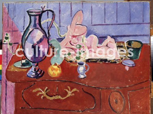Rosafarbene Statuette und Kanne auf roter Kommode, Matisse, Henri (1869-1954). Öl auf Leinwand, Moderne, 1910. Staatliche Eremitage, St. Petersburg, Frankreich. VG-Bild-Kunst.