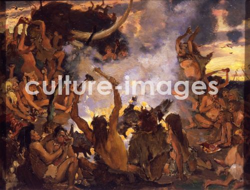 Die Steinzeit. Ein Gelage, Wasnezow, Viktor Michailowitsch (1848-1926). Öl auf Leinwand, Russische MalereI. 19. Jahrhundert, 1883, Staatliche Tretjakow-Galerie, Moskau, Russland.