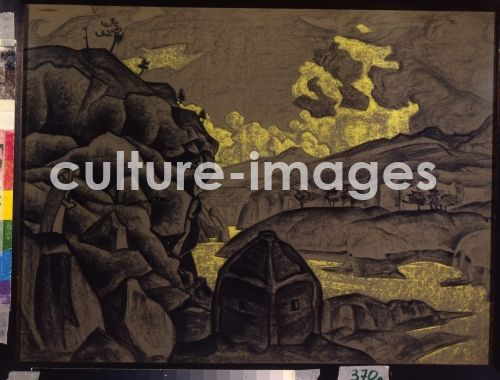 Bühnenbildentwurf zum Theaterstück Peer Gynt von H. Ibsen, Roerich, Nicholas (1874-1947). Pastell auf Papier, BühnenmalereI. 1912. Staatliches Zentrales A. Bachruschin Theatermuseum, Moskau, Russland.