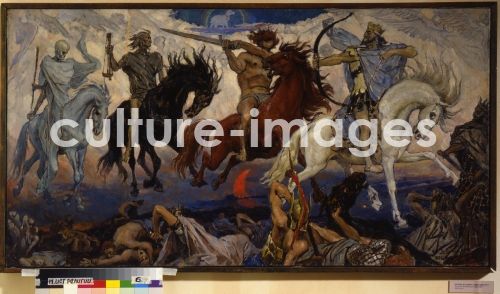 Die vier apokalyptischen Reiter, Wasnezow, Viktor Michailowitsch (1848-1926), Öl auf Leinwand, Jugendstil, 1887, Staatliches Museum für Religionsgeschichte, Sankt Petersburg, Russland.