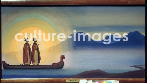 Die Heiligen Boris und Gleb, Roerich, Nicholas (1874-1947), Tempera auf Leinwand, Moderne, 1942, Staatliches Russisches Museum, St. Petersburg, Russland.