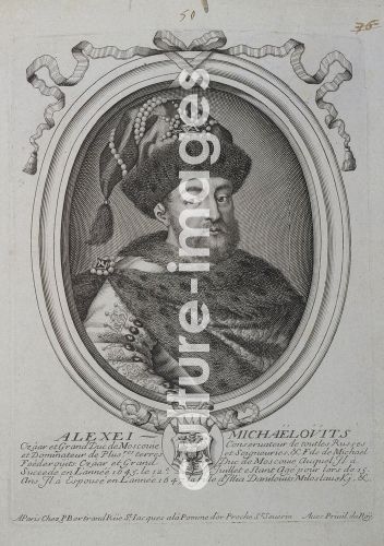 Larmessin, Nicolas de (1684-1755), Porträt des Zaren Alexei I. Michailowitsch von Russland (1629-1676), Kupferstich, Barock, Zweite hrte des 17. Jhs, Staatliche Eremitage, St. Petersburg, 26,6x20.2.