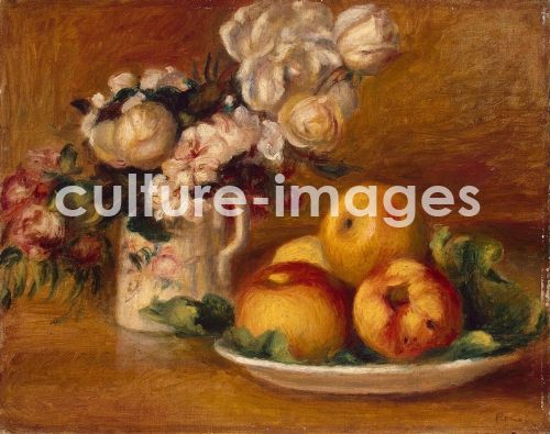 Renoir, Pierre Auguste (1841-1919), Äpfel und Blumen, Öl auf Leinwand, Impressionismus, um 1895, Staatliche Eremitage, St. Petersburg, 32,8x41,4.
