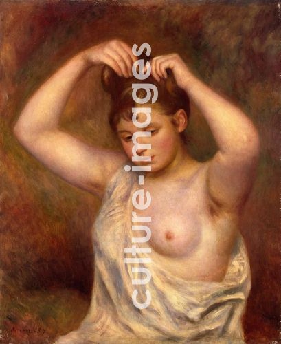 Renoir, Pierre Auguste (1841-1919), Frau, sich die Haare richtend, Öl auf Leinwand, Impressionismus, 1887, Staatliche Eremitage, St. Petersburg, 65,3x54.