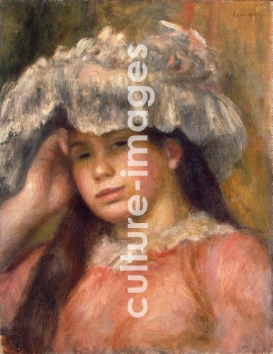 Renoir, Pierre Auguste (1841-1919), Mädchen mit einem Hut, Öl auf Leinwand, Impressionismus, 1892-1894, Staatliche Eremitage, St. Petersburg, 41,3x32,5.