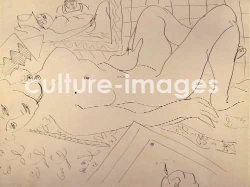 Matisse, Henri (1869-1954), Liegender Akt (Der Maler und sein Modell), Feder, Tusche, Bleistift auf Papier, Fauvismus, 1935, Staatliche Eremitage, St. Petersburg, 37,8x50,5.