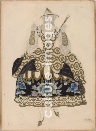 Bakst, Léon (1866-1924), Kostümentwurf zum Ballett Dornröschen von P. TschaikowskI. Bleistift, Aquarell, Gold auf Papier, TheatermalereI. 1921, Privatsammlung.
