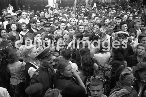 Schaichet, Arkadi (1898-1959), Ehrung der Sieger am Moskauer Weißrussischen Bahnhof, Fotografie, 1945, Russisches Staatliches Archiv für Film- und Fotodokumente, Krasnogorsk.