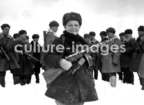 Unbekannter Fotograf, Wowa Jegorow, 15-jähriger Militäraufklärer, Fotografie, 1942, Russisches Staatliches Archiv für Film- und Fotodokumente, Krasnogorsk.