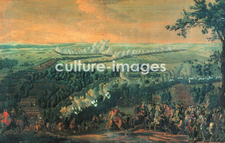 Larmessin, Nicolas de (1684-1755), Die Schlacht bei Lesnaja, Kupferstich, Aquarell, Barock, 1720er, Staatliche Eremitage, St. Petersburg.