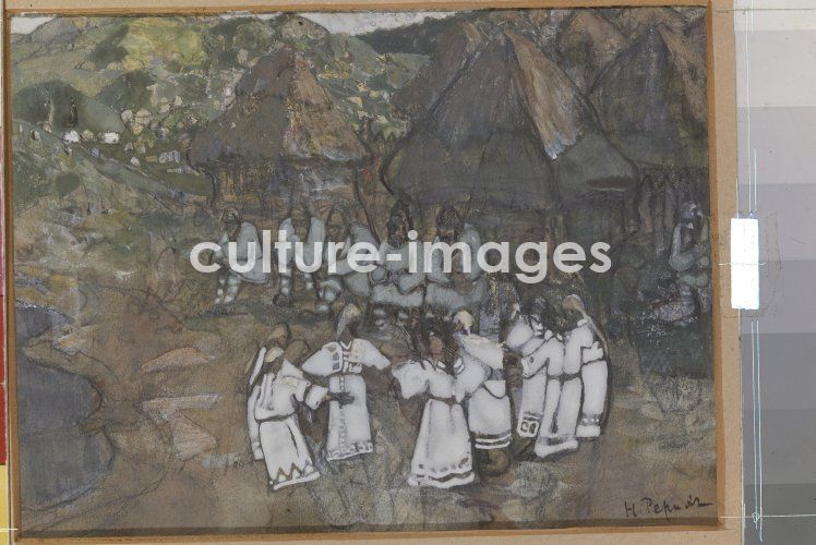 Roerich, Nicholas (1874-1947), Der Reigen, Aquarell, Gouache auf Papier, Symbolismus, Anfang 1900er, Staatliches M. Nesterow Kunstmuseum der Republik Baschkortostan, Ufa.