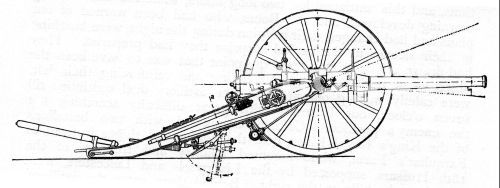 Creusot quick-firing field gun, or Long Tom which delivered eighty-four-pound shells and was a powerful weapon in the Boer armoury. Engraving.