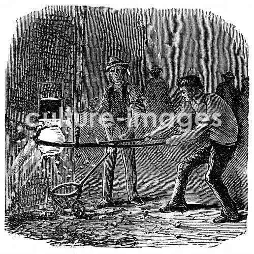 Boiling, a form of puddling, at Phoenix Iron Works, Phoenixville, Pennsylvania. From The Science Record, New York, 1873