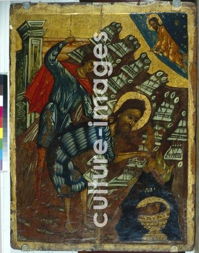 Russische Ikone, Die Enthauptung Johannes des Täufers, Tempera auf Holz, Zweite Hälfte des 16. Jhs., Russland, Staatliche Tretjakow-Galerie, Moskau, 90x66,5, Bibel, Malerei.