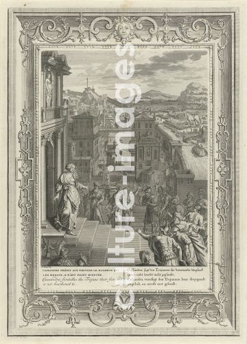 Picart, Bernard (1673–1733), Kassandra sagt den Fall von Troja voraus, Kupferstich, Rokoko, 1731, Niederlande, Rijksmuseum, Amsterdam.