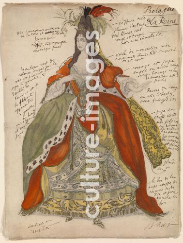 Bakst, Léon (1866-1924), Kostümentwurf zum Ballett Dornröschen von P. Tschaikowski, Bleistift, Aquarell und Gouache auf Papier, 33x25, Theatermalerei, 1921, Russland, Privatsammlung.