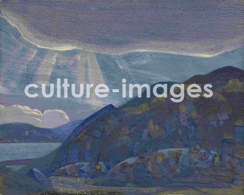 Roerich, Nicholas (1874-1947), Felsen und Klippen (aus der Serie Ladoga), Öl auf Holz, 32,5x40, Symbolismus, 1917-1918. Russland, Privatsammlung.