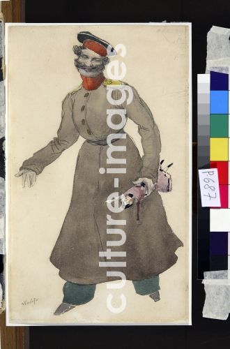 Bakst, Léon (1866-1924), Kostümentwurf zum Ballett Die Puppenfee von J. Bayer, Bleistift, Aquarell auf Papier, 28,2x17,3, 1903, Russland, Theatermalerei, Staatliche Tretjakow-Galerie, Moskau.