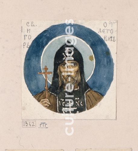 Wasnezow, Viktor Michailowitsch (1848-1926), Heiliger Igor von Tschernigow (Entwurf für die Fresken in der Wladimirkathedrale in Kiew), Aquarell auf Papier, 12x11.5, 1884-1889. Russland, Jugendstil, Staatliche Tretjakow-Galerie, Moskau.