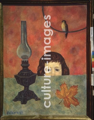 Watenin, Waleri Wladimirowitsch (1933-1977), Mädchen, Lampe und Vogel, Öl auf Leinwand, 1966, Russland, Moderne, Staatliches Russisches Museum, St. Petersburg.
