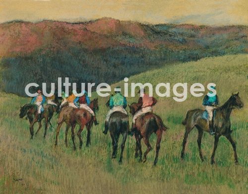 Degas, Edgar (1834-1917), Rennpferde in einer Landschaft, Pastell auf Papier, 47,9x62,9, 1894, Frankreich, Impressionismus, Thyssen-Bornemisza Collections.
